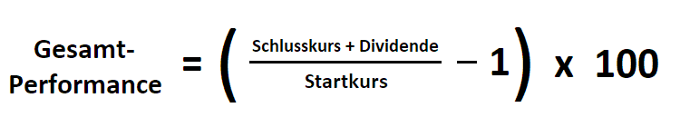 Sie ist in der Tabelle in der Spalte „Kurs“ zu finden. Die für die Performance-Entwicklung müssen wir noch die Dividende hinzurechnen. Das Ergebnis finden wir in der Spalte „Perf.“: