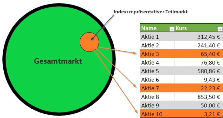 Die historische Begründung für die Betrachtung eines Aktienindexes lag darin, dass es unmöglich war, alle Marktteilnehmer zu jedem neuen Kurs zu berechnen. Es wäre nicht nur sehr mühsam gewesen, sondern hätte ab einer bestimmten Anzahl betrachteter Unternehmen nicht mehr viel Nutzen gebracht. Ein Gesamtmarkt könnte theoretisch inzwischen ebenfalls dargestellt werden.