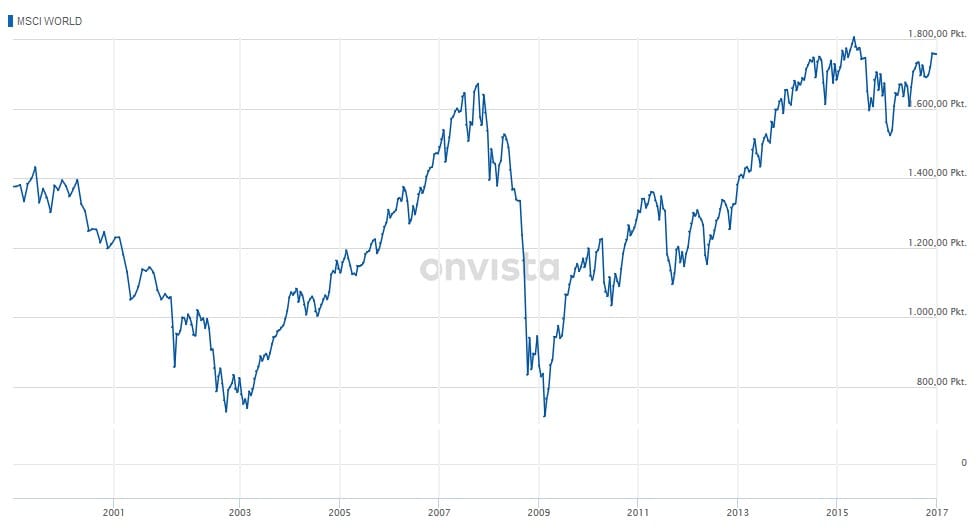 Demnach wäre eine Gesamtperformance (Brutto-Dividende wird reinvestiert) von rund 8,9% pro Jahr möglich gewesen. Der Kursindex hätte indes durchschnittlich 5,8% pro Jahr zugelegt. Und der MSCI Germany Gross Return als Benchmark ungefähr 3,7%. Das bedeutet eine jährliche Überschreitung der Gesamtperformance gegenüber dem Benchmark von 5,2%. Das ist natürlich beeindruckend. Der DAX hat übrigens, wir erinnern uns, ca. 3,04% in der Zeit zwischen 2000 und Ende 2016 erzielt.