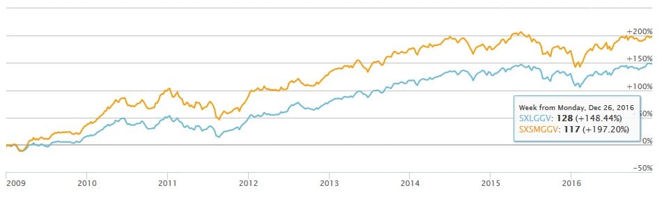 Jemand, der aggressiver auf Portfolioaufbau durch Kurssteigerungen konzentriert ist, der sollte sich lieber eine andere Strategie suchen. Denn auch wenn die Dividendenstrategie kein echter Underperformer ist, so ist der Fokus auf Large Caps tatsächlich weniger profitabel, was das Wachstum eines Unternehmens (und damit des Kapitals) angeht.