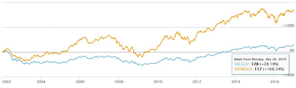 Zum Beispiel kann ein Kritiker zurecht behaupten, dass der Fokus auf Dividendenaktien automatisch den investierbaren Horizont auf Large-Caps einschränkt, und damit tendenziell weniger Kurs-Performance verbunden ist. Andererseits ist aber die Behauptung, Dividendenaktien würden sich schlechter entwickeln als der Rest eines Index, eher falsch.