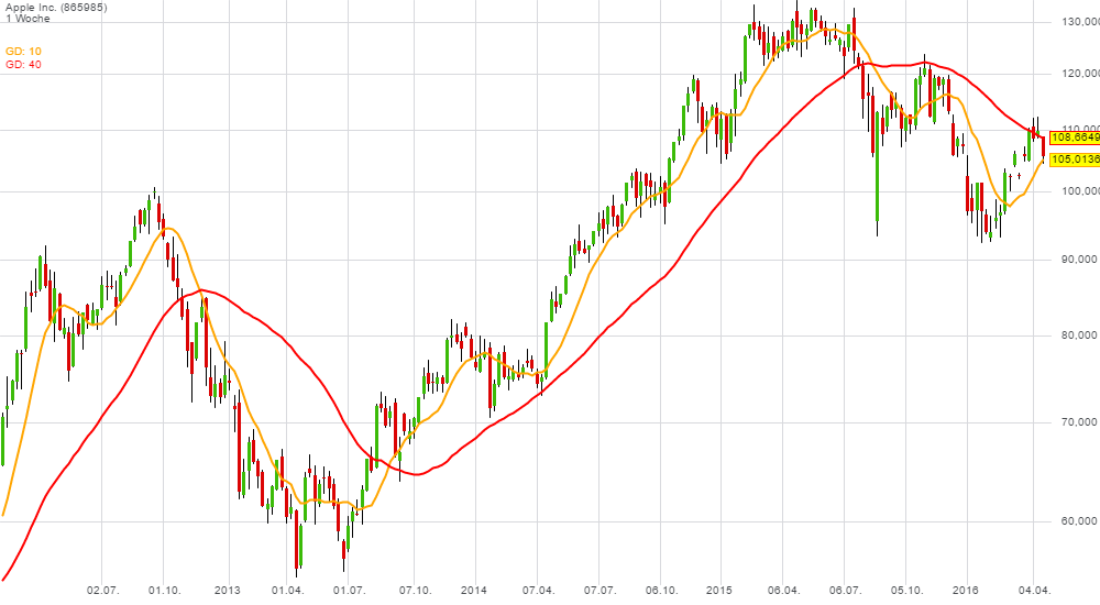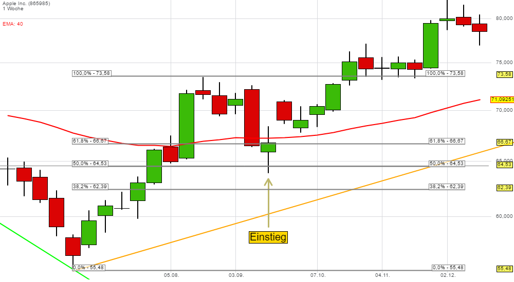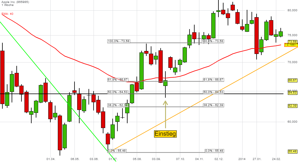 Rechenbeispiel für Trendfolge am Beispiel Apple