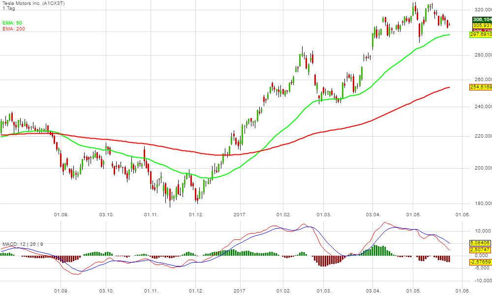 Im Vergleich: Die normalen gleitenden Durchschnitte 50 und 200 hingegen reagieren stärker verzögert.